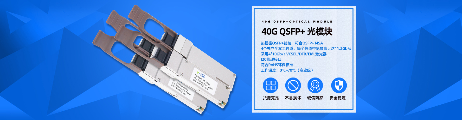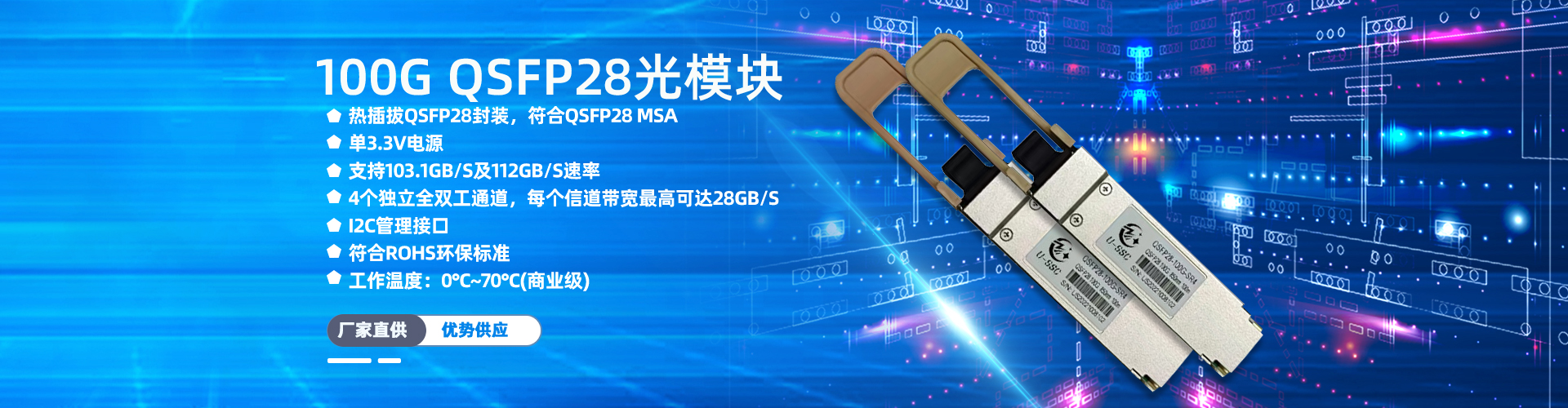 光模块:1.25G 10G SFP+/40G QSFP+/25G SFP28/100G QSFP28/400G QSFP- dd等;